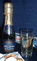 This is a very good Sparkling Wine, and its a delight to find it on a plane. Even the bottle says quality, with a true foil top. The content is light and very fizzy, with an elegant and well balanced floral nose. A delicate blend of 20% Chardonnay, 40% Pinot Noir, and 40% Pinot Meunier. It comes from a vineyard near Chouilly, close to Epernay.